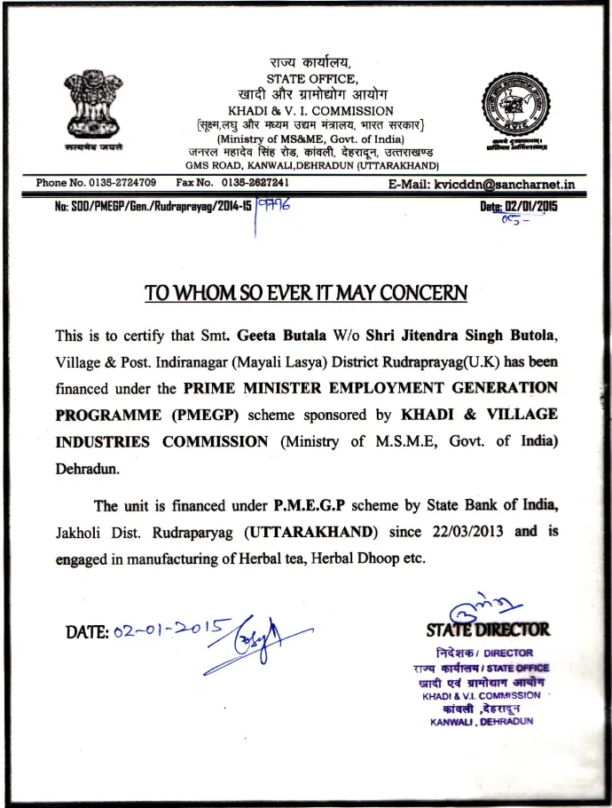 R&D on Honey Bee, Badri Cow, medicinal & aromatic plants, Organic farming, Khadi-Gramodyog and employment generation using local resources.